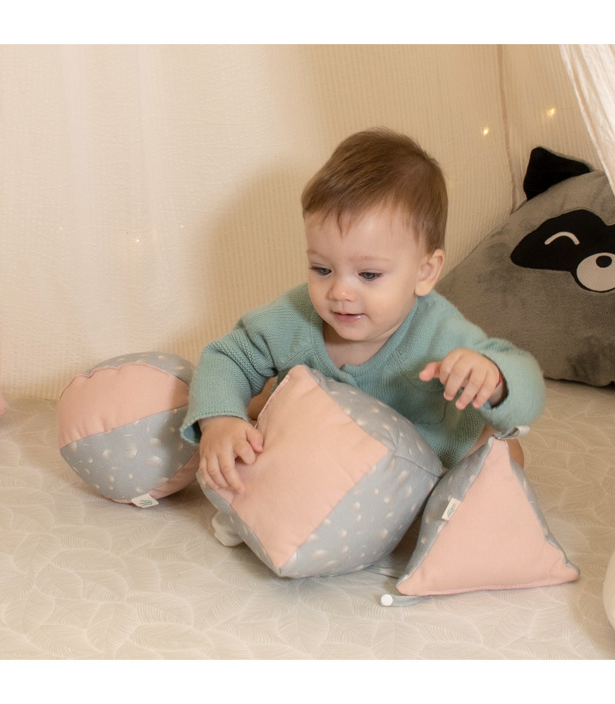 El pack de juguetes Montessori de Jyoko está compuesto por 3 cojines de distintas formas geométricas y tamaño. Cada pieza lleva un cascabel interior que despertará su curiosidad al jugar.